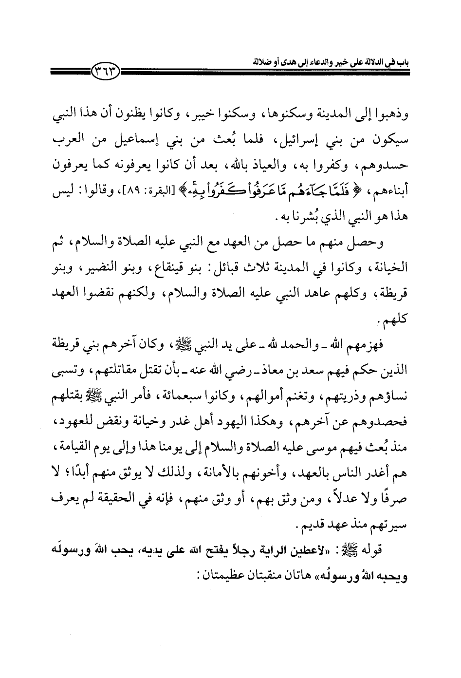 فهزمهم الله- والحمد لله- على يد النبي صلى الله عليه وسلم وكان آخرهم بني قريظة الذين حكم فيهم سعد بن معاذ- رضي الله عنه- بأن تقتل مقاتلتهم، وتسبى نساؤهم وذريتهم، وتغنم أموالهم، وكانوا سبعمائة، فأمر النبي صلى الله عليه وسل بقتلهم فحصدوهم عن آخرهم فهكذا اليهود أهل غدر وخيانة ونقض للعهود، منذ بُعث فيهم موسى عليه الصلاة والسلام إلى يومنا هذا وإلى يوم القيامة، هم أغدر الناس بالعهد، وأخونهم بالأمانة، ولذلك لا يوثق منهم أبداً؛ لا صرفاً ولا عدلاً، ومن وثق بهم، أو وثق منهم. فإنه في الحقيقة لم يعرف سيرتهم منذ عهد قديم.
