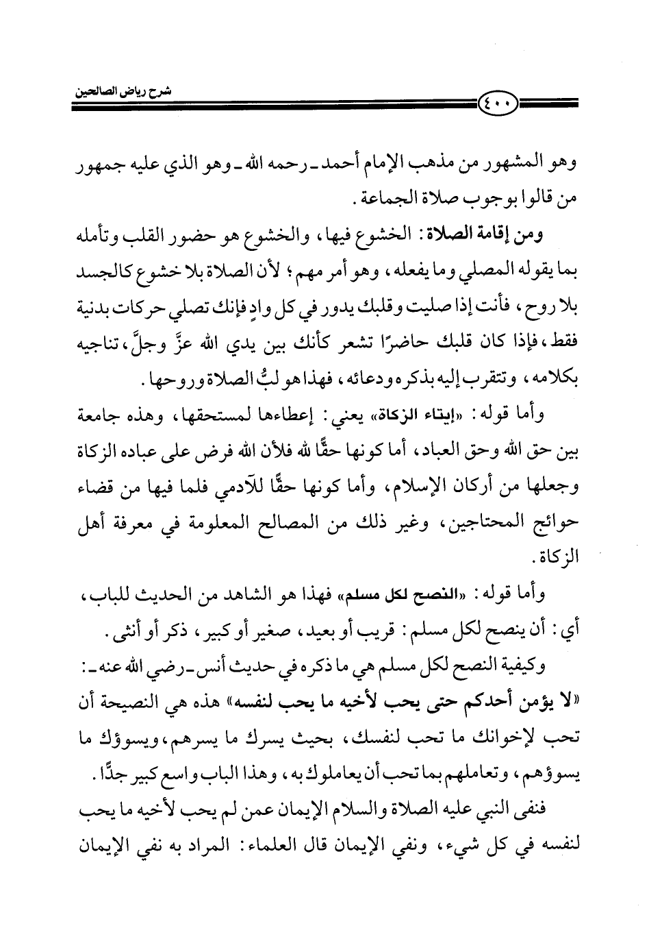 ومن إقامة الصلاة: الخشوع فيها، والخشوع هو حضور القلب وتأمله بما يقوله المصلي وما يفعله، وهو أمر مهم؛ لأن الصلاة بلا خشوع كالجسد بلا روح، فأنت إذا صليت وقلبك يدور في كل وادٍ فإنك تصلي حركات بدنيه فقط، فإذا كان قلبك حاضراً تشعر كأنك بين يدي الله عزّ وجلّ، تناجيه بكلامه، وتتقرب إليه بذكره ودعائه، فهذا هو لبُّ الصلاة روحها.
