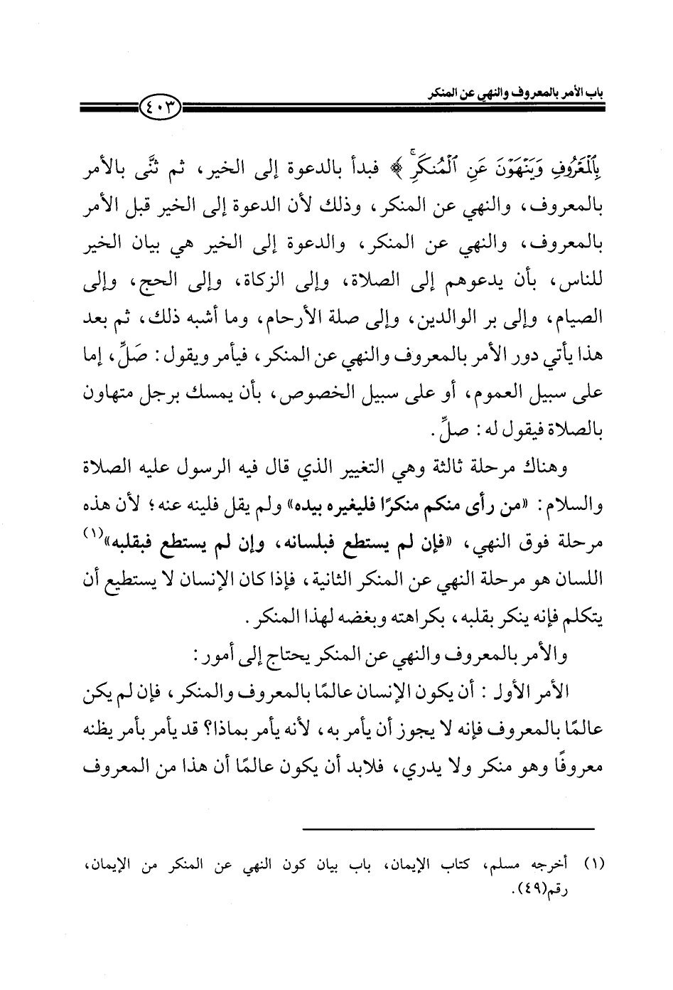والأمر بالمعروف والنهي عن المنكر يحتاج إلى أمور: