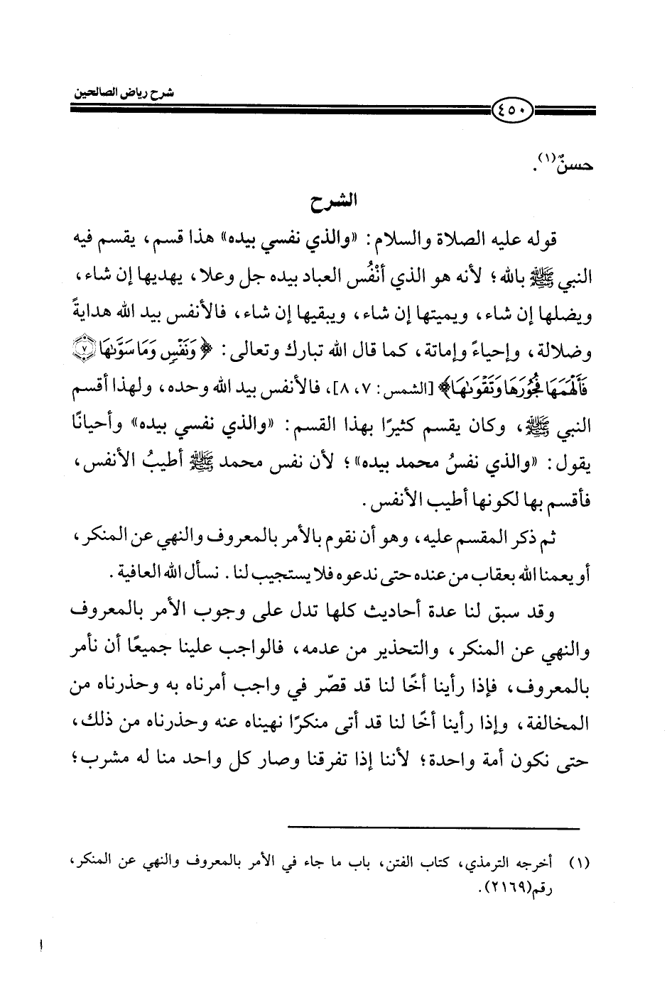 وقد سبق لنا عدة أحاديث كلها تدل على وجوب الأمر بالمعروف والنهي عن المنكر، والتحذير من عدمه، فالواجب علينا جميعاً أن نأمر بالمعروف، فإذا رأينا أخاً لنا قد قصّر في واجب أمرناه به وحذرناه من المخالفة، وإذا رأينا أخاً لنا قد أتى منكراً نهيناه عنه وحذرناه من ذلك، حتى نكون أمة واحدة؛ لأننا إذا تفرقنا وصار كل واحد منا له مشرب؛