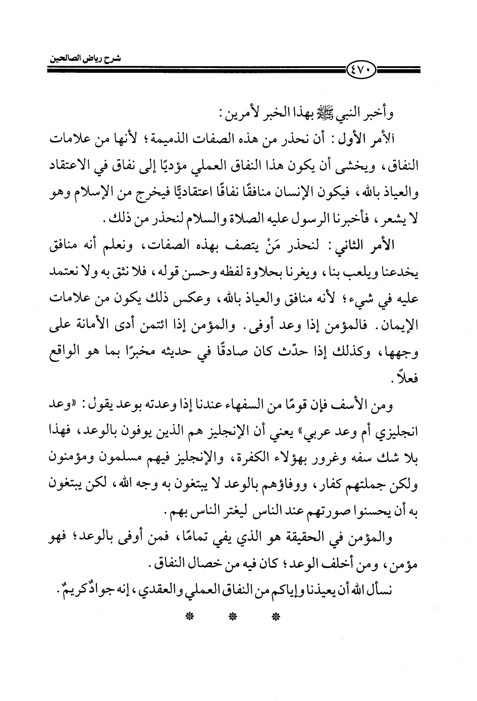 نسأل الله أن يعيذنا وإياكم من النفاق العملي والعقدي، أنه جواد كريمٌ.