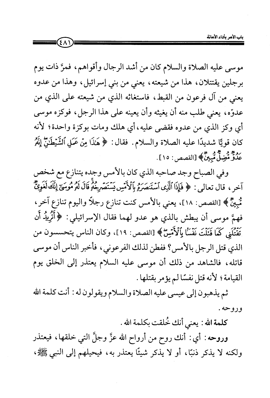 ، يعني بالأمس كنت تنازع رجلاً واليوم تنازع آخر، فهم موسى أن يبطش بالذي هو عدو لهما فقال الإسرائيلي (أَتُرِيدُ أَنْ تَقْتُلَنِي كَمَا قَتَلْتَ نَفْساً بِالْأَمْسِ) (القصص: 19) وكان الناس يتحسسون من الذي قتل الرجل بالأمس؟ ففطن لذلك الفرعوني، فأخبر الناس أن موسى قاتله، فالشاهد من ذلك أن موسى عليه السلام يعتذر إلى الخلق يوم القيامة؛ لأنه قتلك نفساً لم يؤمر بقتلها.