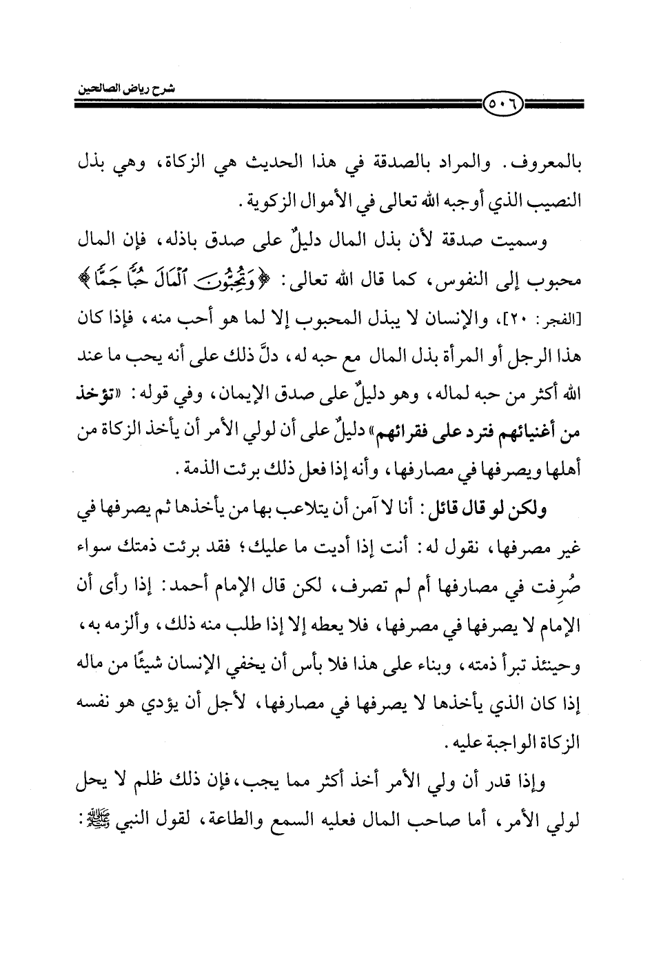 وسميت صدقة لأن بذل المال دليلٌ على صدق باذله، فإن المال محبوب إلى النفوس، كما قال الله تعالى: (وَتُحِبُّونَ الْمَالَ حُبّاً جَمّاً) (الفجر: 20) ، والإنسان لا يبذل المحبوب إلا لما هو أحب منه، فإذا كان هذا الرجل أو المرأة بذل المال مع حبه له، دلّ ذلك على أنه يحب ما عند الله أكثر من حبه لماله، وهو دليلّ على صدق الإيمان، وفي قوله: " تؤخذ من أغنيائهم فترد على فقرائهم" دليلٌ على أن لولي الأمر أن يأخذ الزكاة من أهلها ويصرفها في مصارفها، وأنه إذا فعل ذلك برئت الذمة.