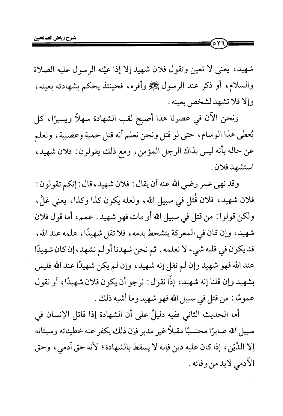 ونحن الآن في عصرنا هذا أصبح لقب الشهادة سهلاً ويسيراً، كل يُعطى هذا الوسام، حتى لو قتل ونحن نعلم أنه قتل حمية وعصبية، ونعلم عن حاله بأنه ليس بذاك الرجل المؤمن، مع ذلك يقولون: فلان شهيد، استشهد فلان.