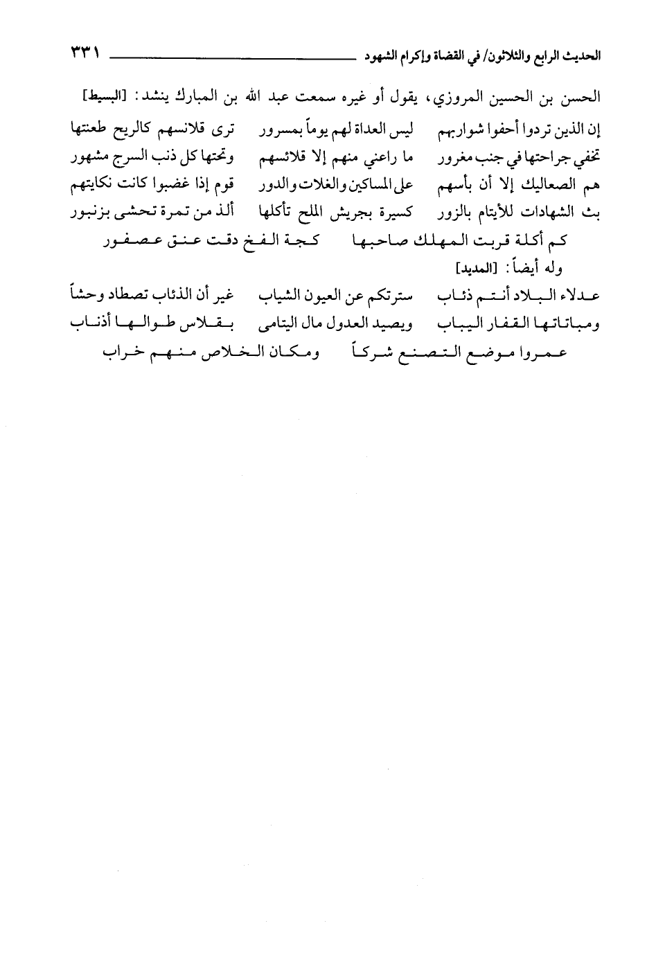 الْحَسَنَ بْنَ الْحُسَيْنِ الْمَرْوَزِيَّ، يَقُولُ أَوْ غَيْرَهُ سَمِعْتُ عَبْدَ اللَّهِ بْنَ الْمُبَارَكِ، يُنْشِدُ: