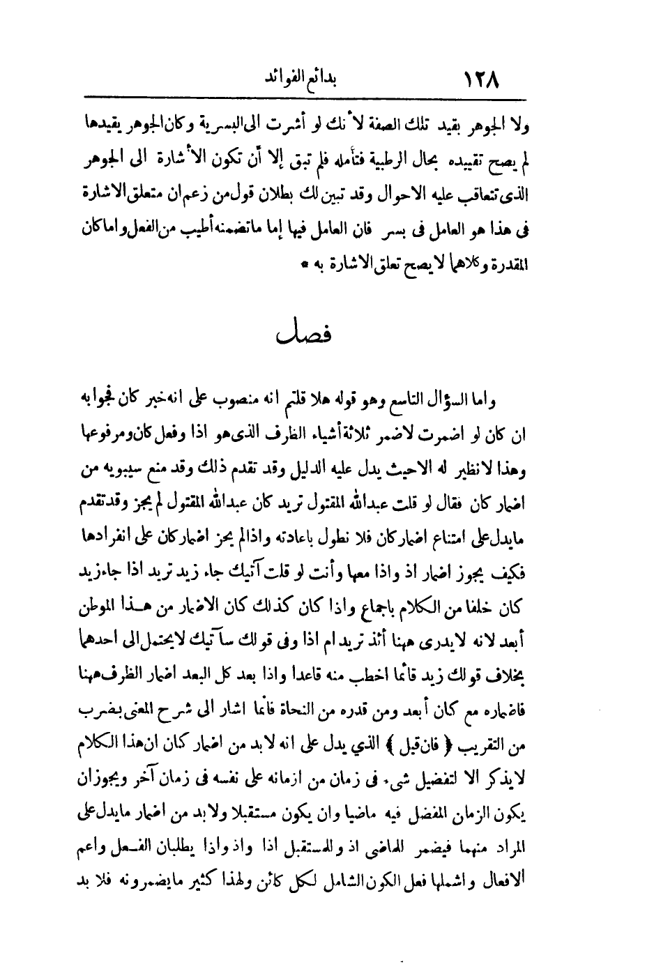 ولا الجوهر بقيد تلك الصفة لأنك لو أشرت إلى البسرية وكان الجوهر يفيدها لم يصح تقييده بحال الرطبية فتأمله فلم تبق إلا أن تكون الإشارة إلى الجوهر الذي تتعاقب عليه الأحوال وقد تبين لك بطلان قول من زعم أن متعلق الإشارة في هذا هو العامل في بسر فإن العامل فيها إما ما تضمنه أطيب من الفعل وإما كان المقدرة وكلاهما لا يصح تعلق الإشارة به