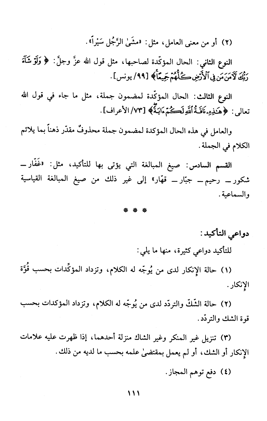(1) حالة الإِنكار لدى من يُوجّه له الكلام، وتزداد المؤكِّدات بحسب قُوَّة الإِنكار.