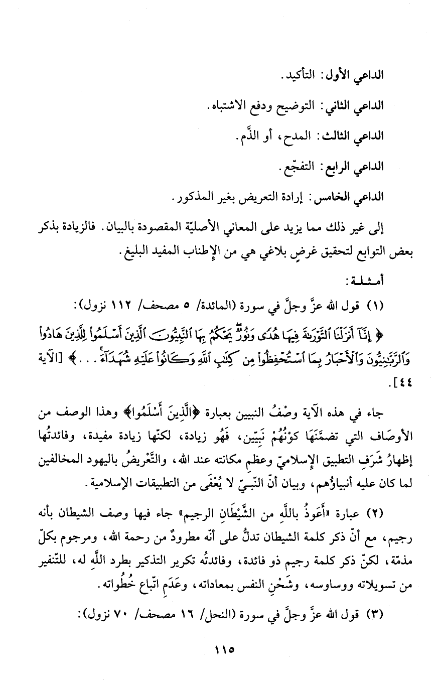 الداعي الثاني: التوضيح ودفع الاشتباه.