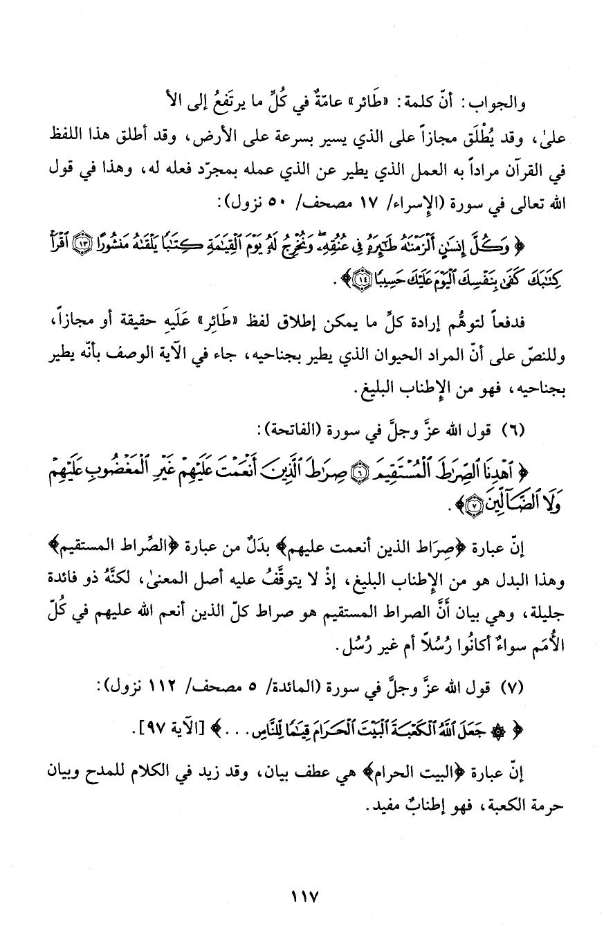 والجواب: أنّ كلمة: "طَائر" عامّةٌ في كُلِّ ما يرتَفعُ إلى الأعلى، وقد يُطْلَق مجازاً على الذي يسير بسرعة على الأرض، وقد أطلق هذا اللفظ في القرآن مراداً به العمل الذي يطير عن الذي عمله بمجرّد فعله له، وهذا في قول الله تعالى في سورة (الإِسراء/ 17 مصحف/ 50 نزول) :
