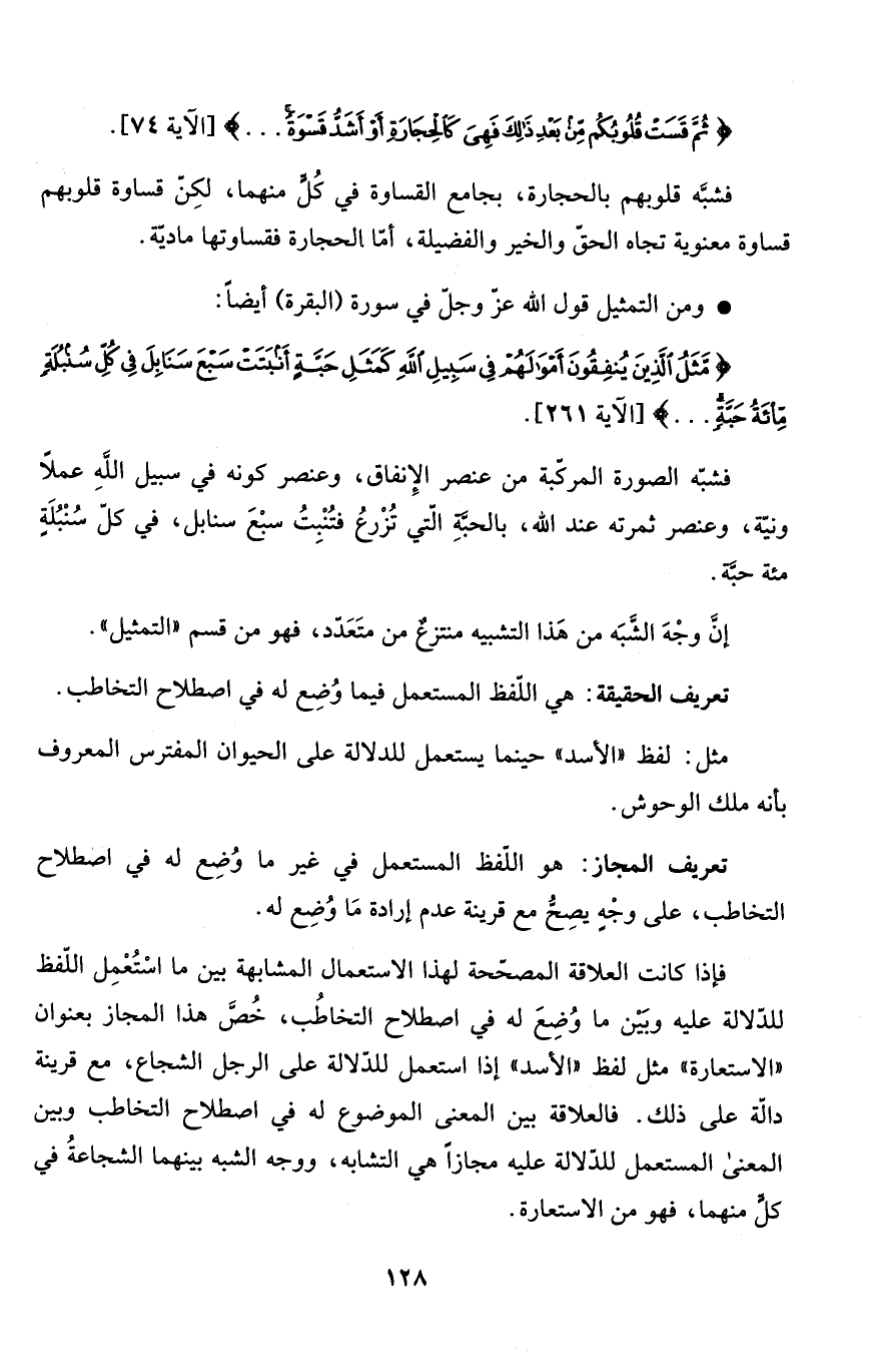 تعريف المجاز: هو اللّفظ المستعمل في غير ما وُضِع له في اصطلاح التخاطب، على وجْهٍ يصِحُّ مع قرينة عدم إرادة مَا وُضِع له.
