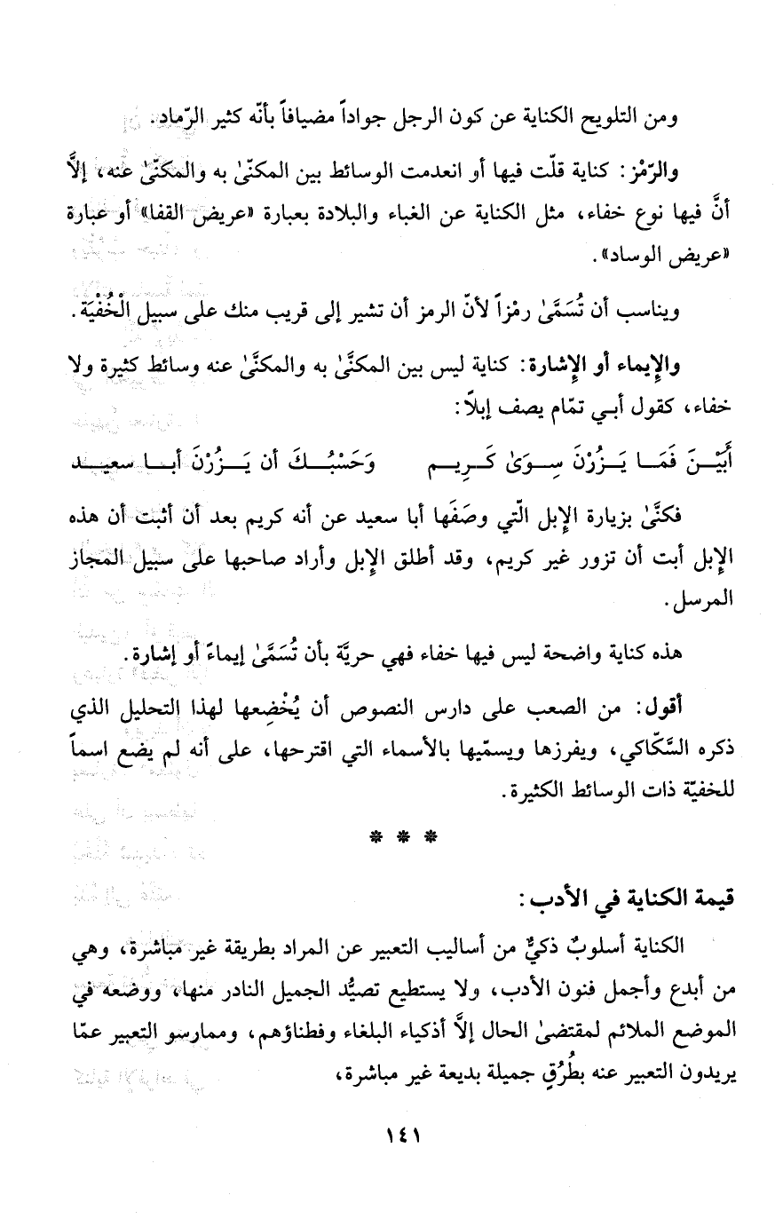 ومن التلويح الكناية عن كون الرجل جواداً مضيافاً بأنّه كثير الرّماد.