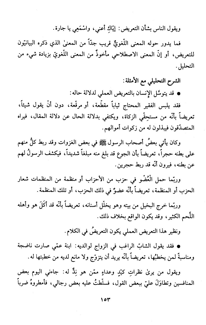 ونظير هذا التعريض العملي يكون التعريضُ في الكلام.