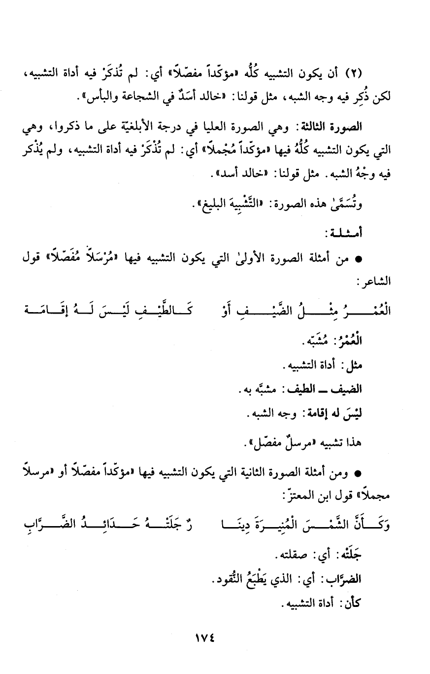 * ومن أمثلة الصورة الثانية التي يكون التشبيه فيها "مؤكّداً مفصّلاً أو "مرسلاً مجملاً" قول ابن المعتزّ: