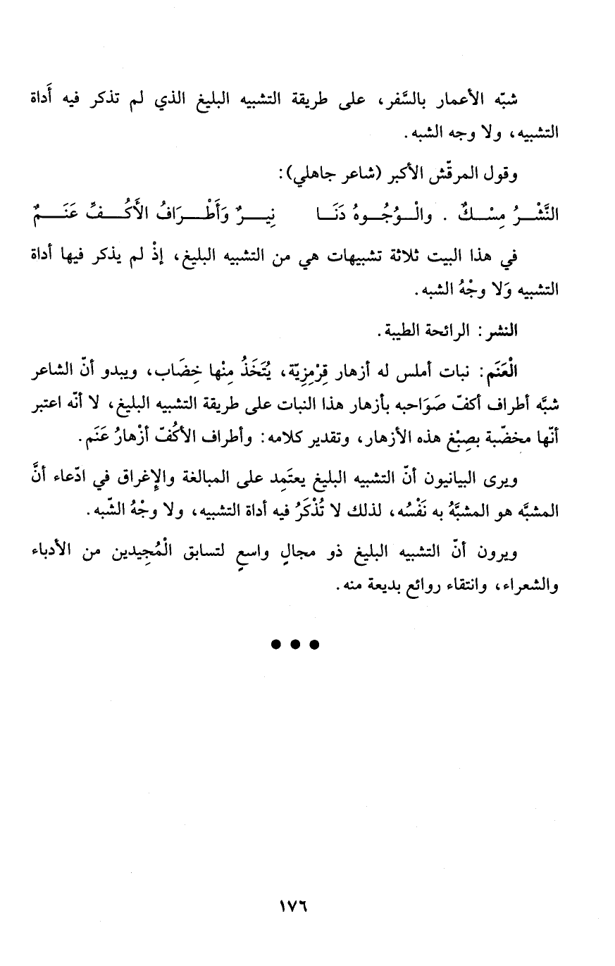 ويرون أنّ التشبيه البليغ ذو مجالٍ واسعٍ لتسابق الْمُجِيدين من الأدباء والشعراء، وانتقاء روائع بديعة منه.