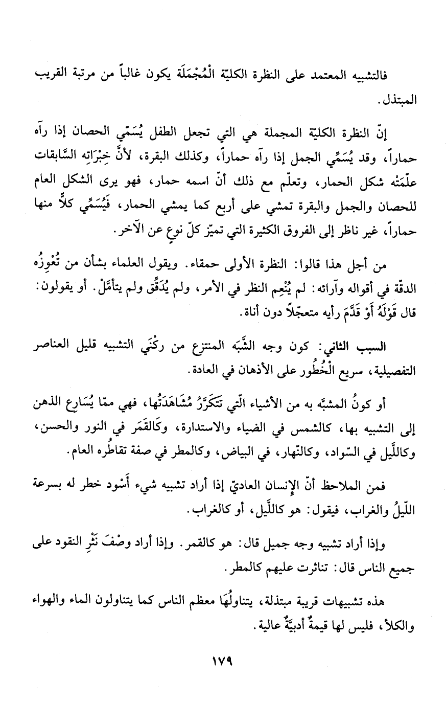 فالتشبيه المعتمد على النظرة الكليّة الْمُجْمَلَة يكون غالباً من مرتبة القريب المبتذل.