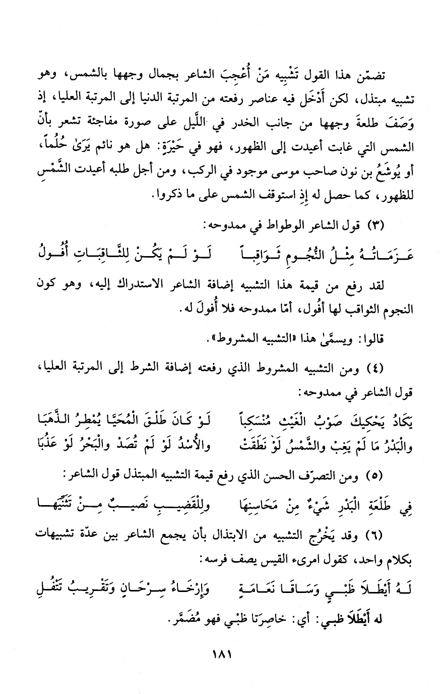 (4) ومن التشبيه المشروط الذي رفعته إضافة الشرط إلى المرتبة العليا، قول الشاعر في ممدوحه:
