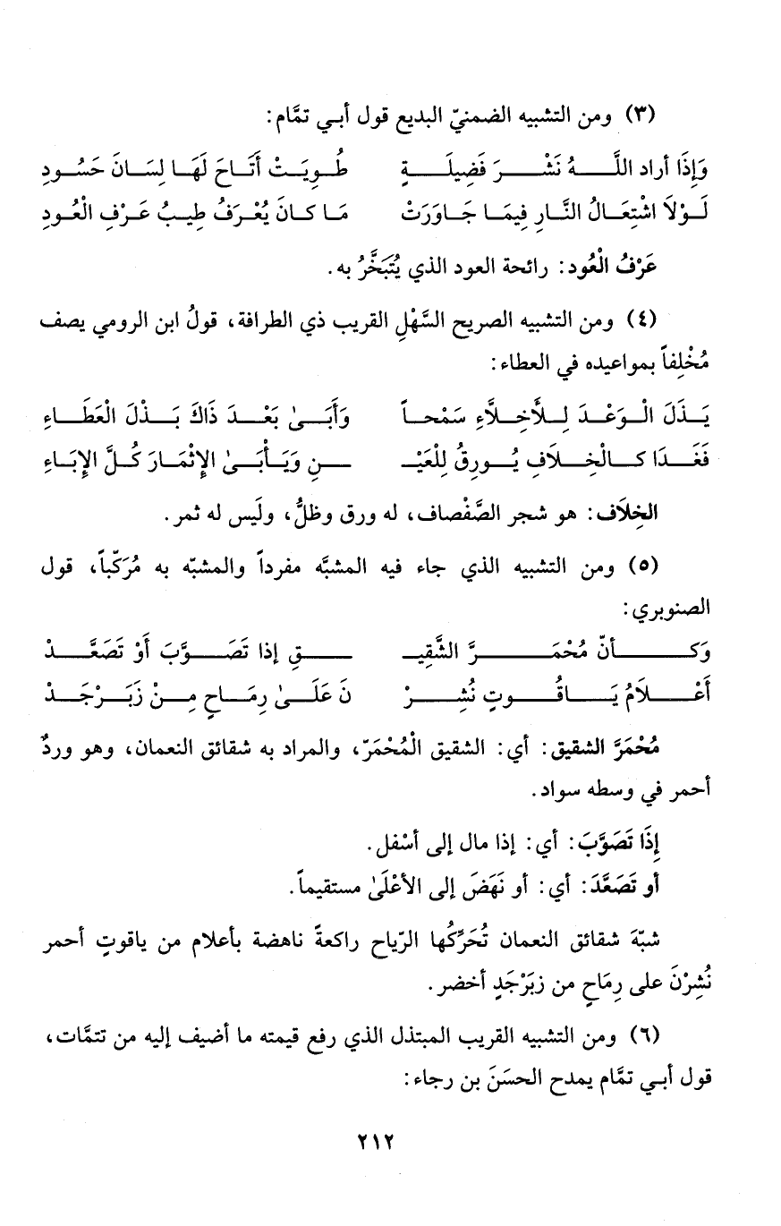 (6) ومن التشبيه القريب المبتذل الذي رفع قيمته ما أضيف إليه من تتمَّات، قول أبي تمَّام يمدح الحسَنَ بن رجاء:
