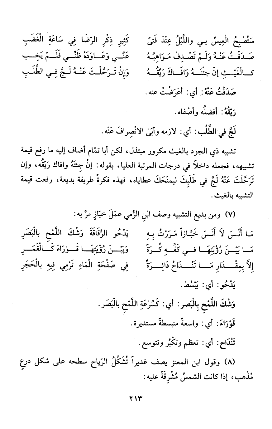 (8) وقول ابن المعتز يصف غديراً تُشَكِّلُ الرّياح سطحه على شكل درعٍ مُذْهب، إذا كانت الشمسُ مُشْرِقَةً عليه: