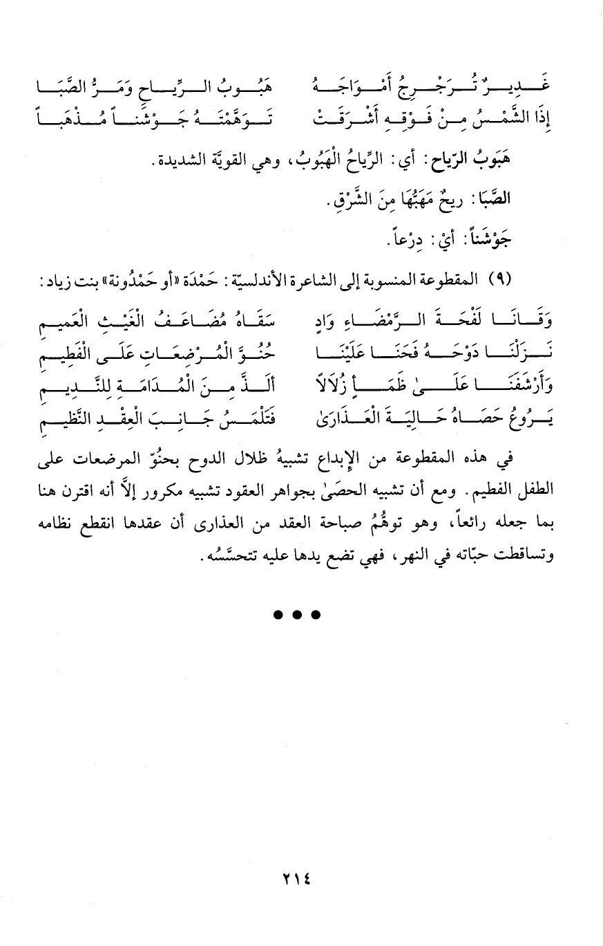 (9) المقطوعة المنسوبة إلى الشاعرة الأندلسيّة: حَمْدَة "أو حَمْدُونة" بنت زياد: