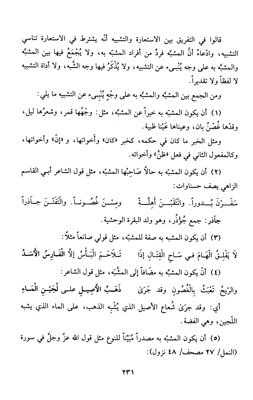 (5) أن يكون المشبّه به مصدراً مُبَيِّناً للنوع مثل قول الله عزَّ وجلَّ في سورة (النمل/ 27 مصحف/ 48 نزول) :