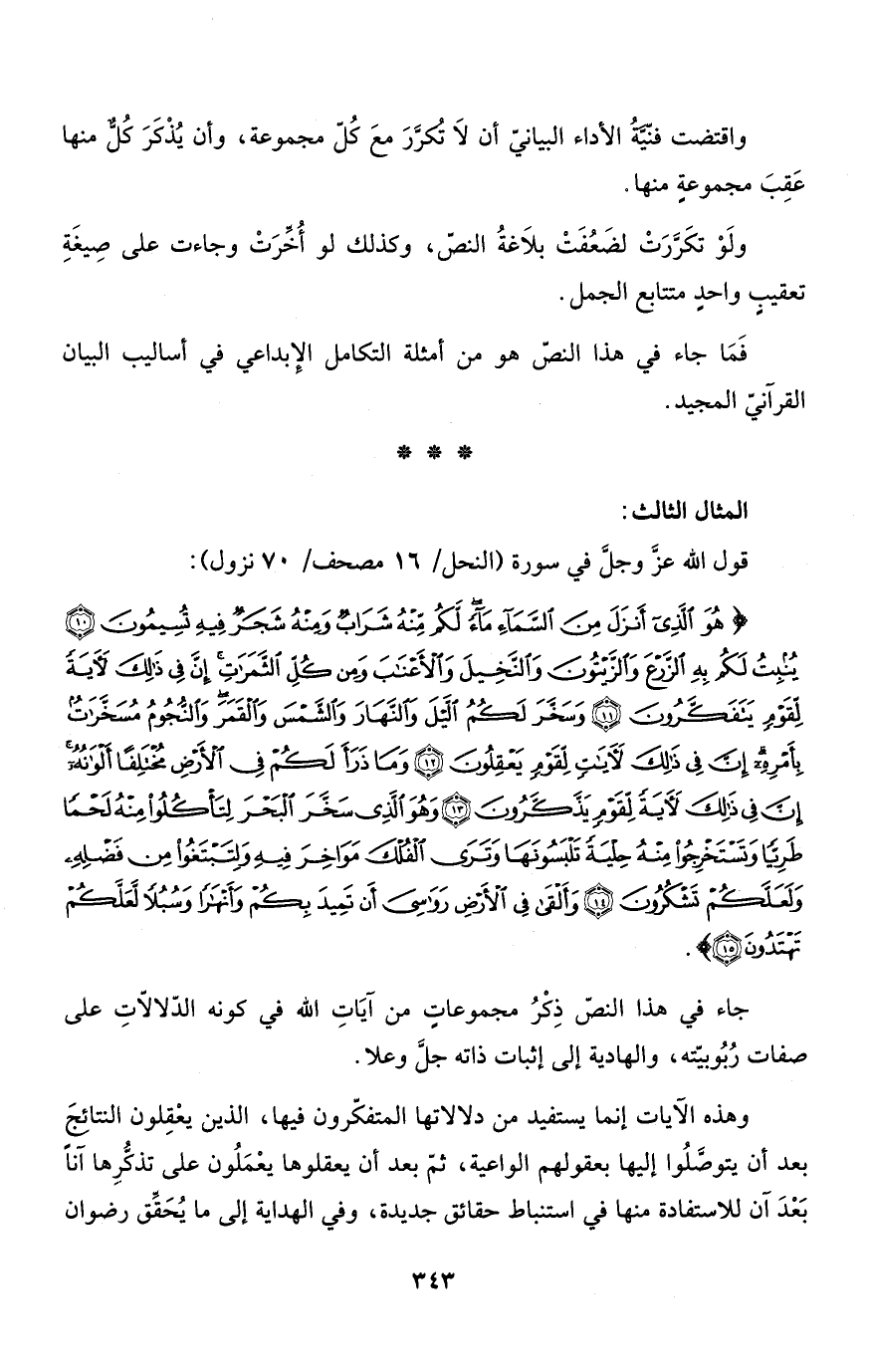 فَمَا جاء في هذا النصّ هو من أمثلة التكامل الإِبداعي في أساليب البيان القرآنيّ المجيد.