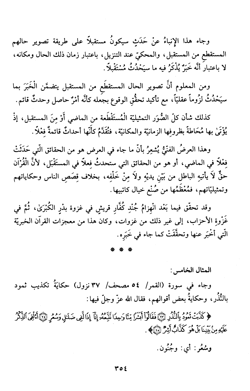 وجاء في سورة (القمر/ 54 مصحف/ 37 نزول) حكايَةُ تكذيب ثمود بالنُّذُر، وحكايةُ بعض أقوالهم، فقال الله عزّ وجلّ فيها: