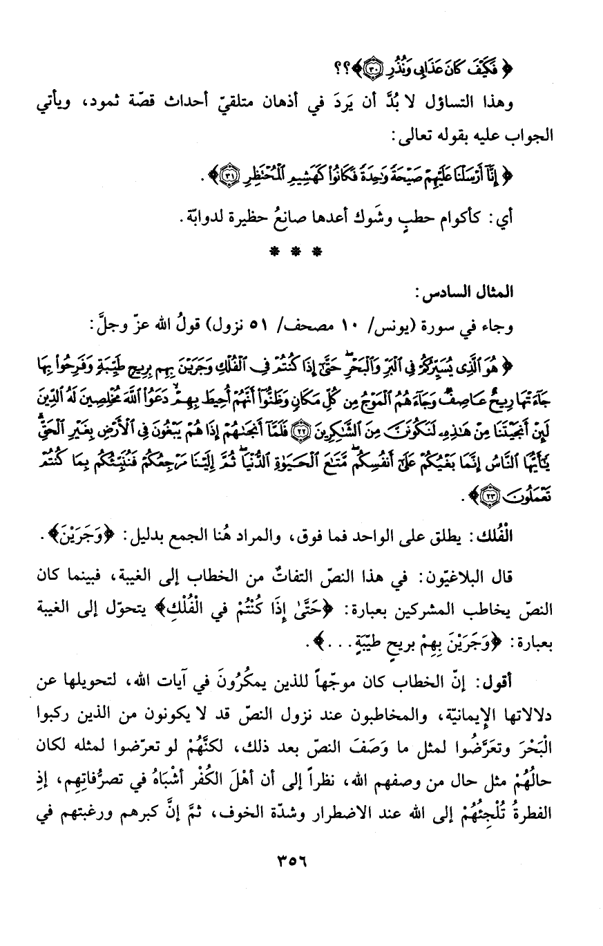 قال البلاغيّون: في هذا النصّ التفاتٌ من الخطاب إلى الغيبة، فبينما كان النصّ يخاطب المشركين بعبارة: {حتى إِذَا كُنتُمْ فِي الفلك} يتحوّل إلى الغيب بعبارة: {وَجَرَيْنَ بِهِم بِرِيحٍ طَيِّبَةٍ ... } .