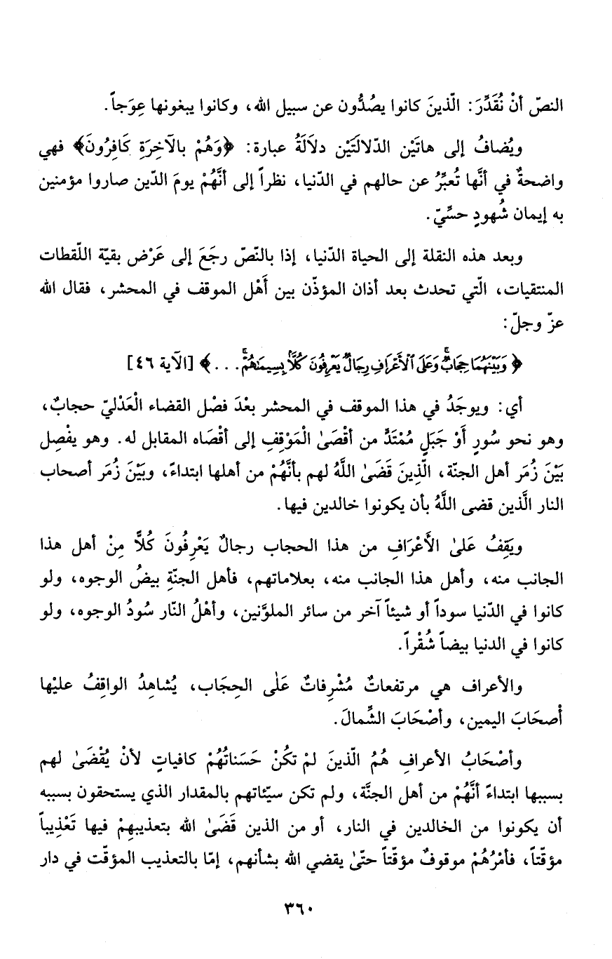 والأعراف هي مرتفعاتٌ مُشْرِفاتٌ عَلى الحِجَاب، يُشاهِدُ الواقِفُ عليْها أْصحَابَ اليمين، وأصْحَابَ الشِّمالَ.