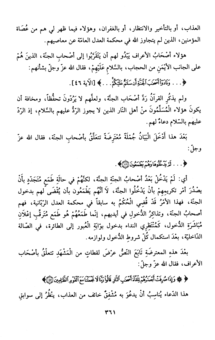 هؤلاء أصْحَابُ الأعراف يَبْدُو لهم أن يَتَقَرَّبُوا إلى أصْحابِ الجنّة، الذينَ هُمْ على الجانب الأيْمَنِ من الحجاب، بالسَّلامِ عَلَيْهِمْ، فقال الله عزّ وجلّ بشأنهم: