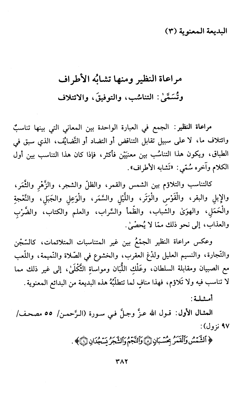 مراعاة النظير ومنها تشابُه الأطراف وتُسَمَّى: التناسُب، والتوفيقَ، والائتلاف