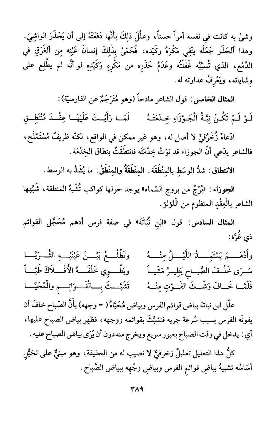 المثال الخامس: قول الشاعر مادحاً (وهو مُتَرْجَمٌ عن الفارسيّة) :