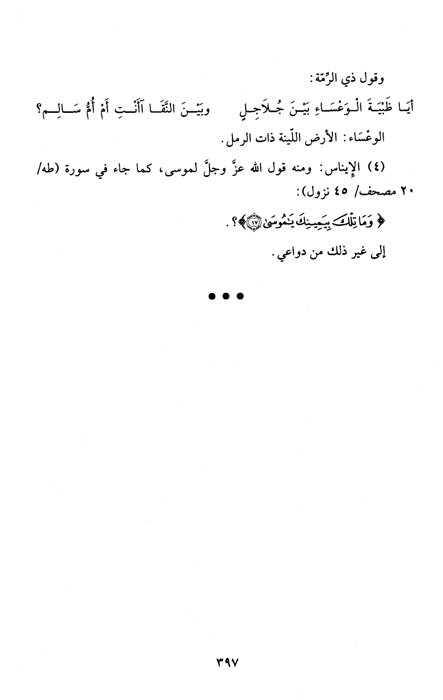 (4) الإِيناس: ومنه قول الله عزَّ وجلَّ لموسى، كما جاء في سورة (طه/ 20 مصحف/ 45 نزول) :