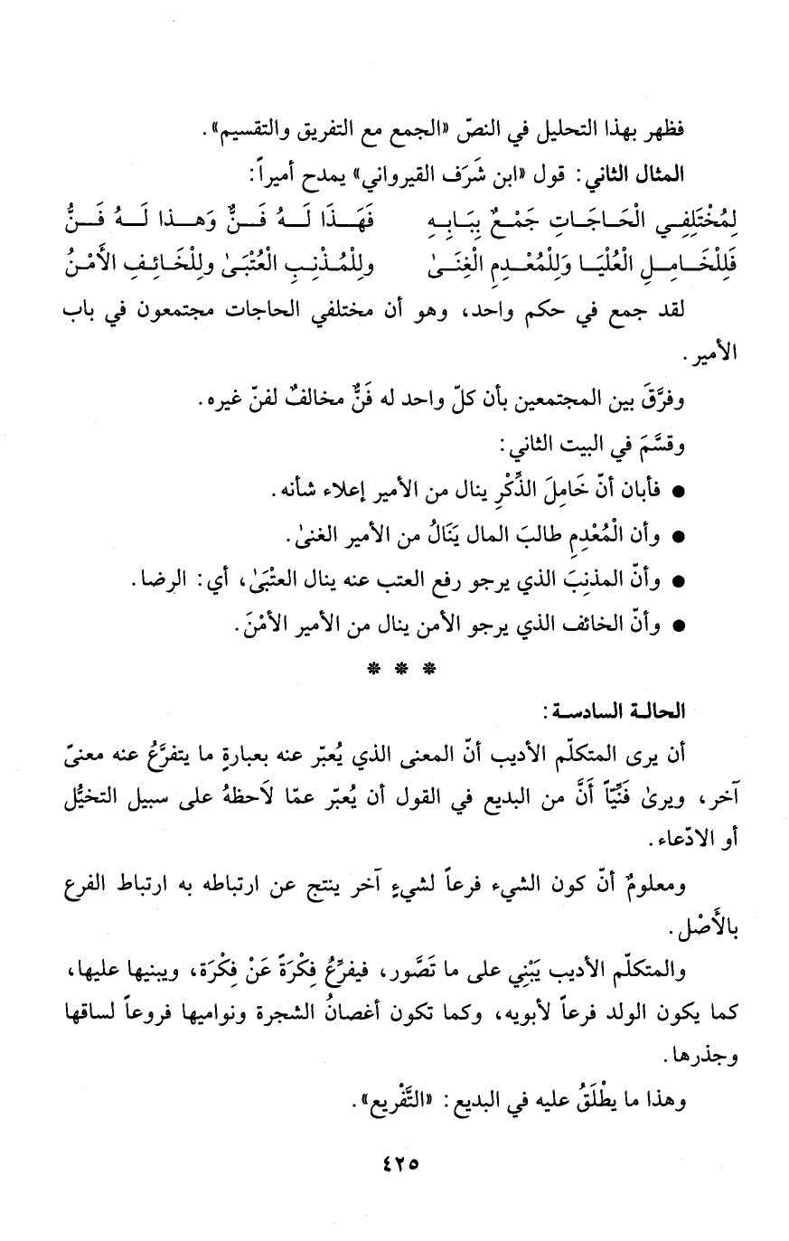 وهذا ما يطْلَقُ عليه في البديع: "التَّفْريع".