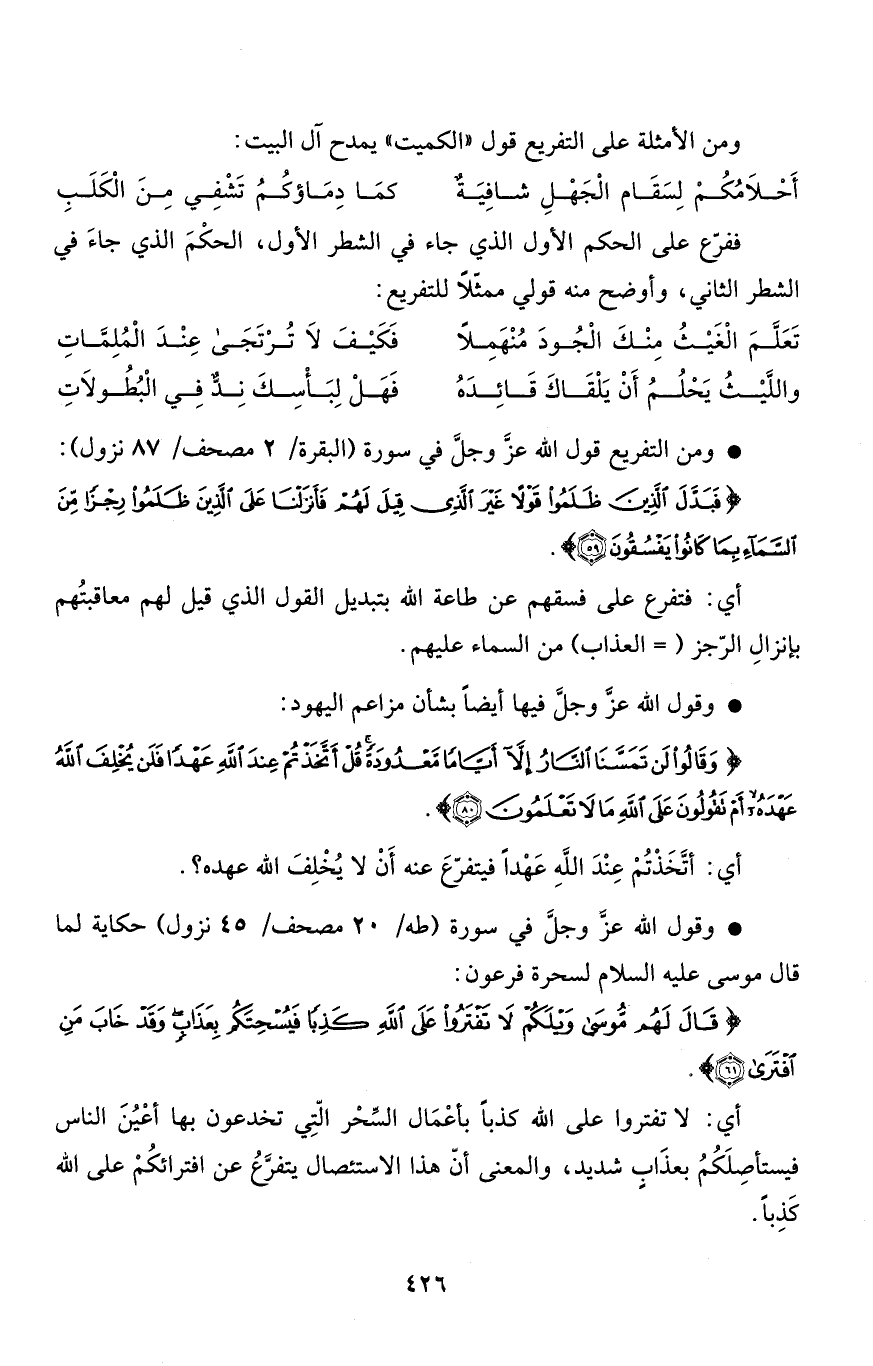 * ومن التفريع قول الله عزَّ وجلَّ في سورة (البقرة/ 2 مصحف/ 87 نزول) :