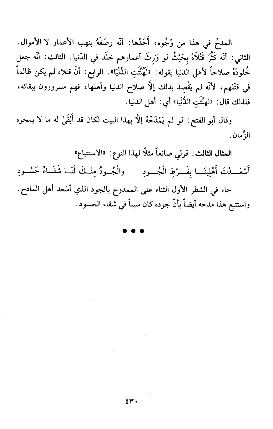 المدحُ في هذا من وُجُوه، أَحَدُها: أنّه وصَفَهُ بنهب الأعمال لا الأموال.