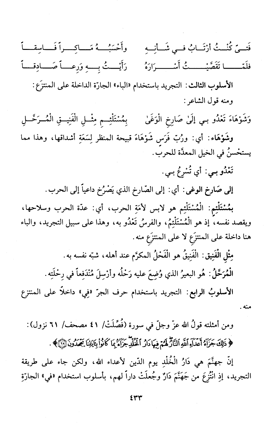 الأسلوبُ الرابع: التجريد باستخدام حرف الجرّ "فِي" داخلاً على المنتزع منه.