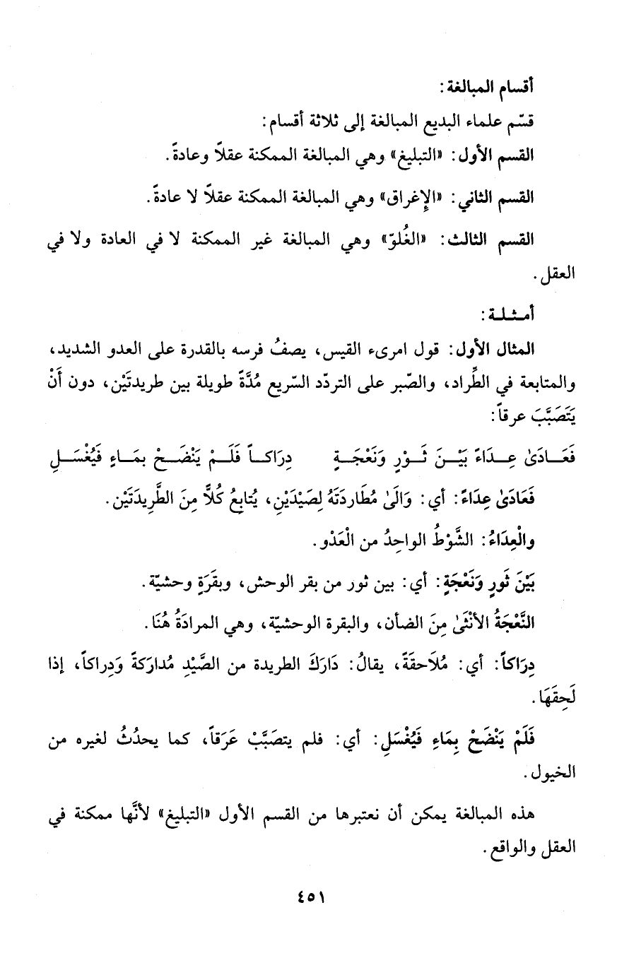 القسم الثالث: "الغُلوّ" وهي المبالغة غير الممكنة لا في العادة ولا في العقل.