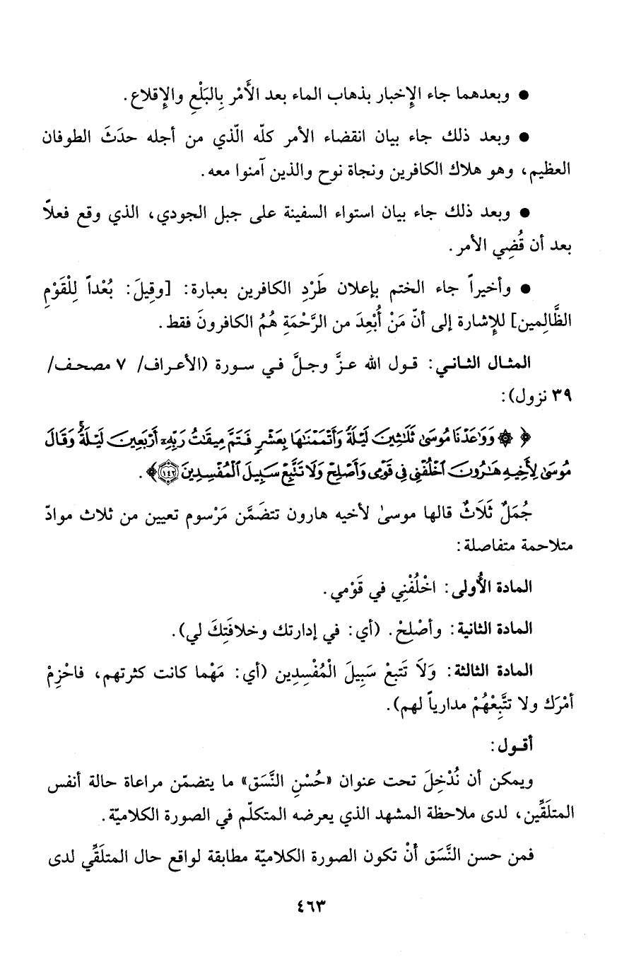 المادة الثالثة: وَلاَ تَتبعْ سَبِيلَ الْمُفْسِدِين (أي: مَهْما كانت كثرتهم، فاحْزِمْ أمْرَك ولا تتَّبِعْهُمْ مدارياً لهم) .