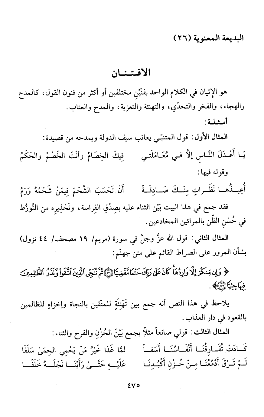 هو الإِتيان في الكلام الواحد بفنّيْنِ مختلفين أو أكثر من فنون القول، كالمدح والهجاء، والفخر والتحدّي، والتهنئة والتعزية، والمدح والعتاب.