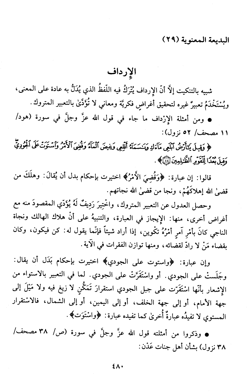 * ومن أمثلة الإِرْداف ما جاء في قول الله عزَّ وجلَّ في سورة (هود/ 11 مصحف/ 52 نزول) :