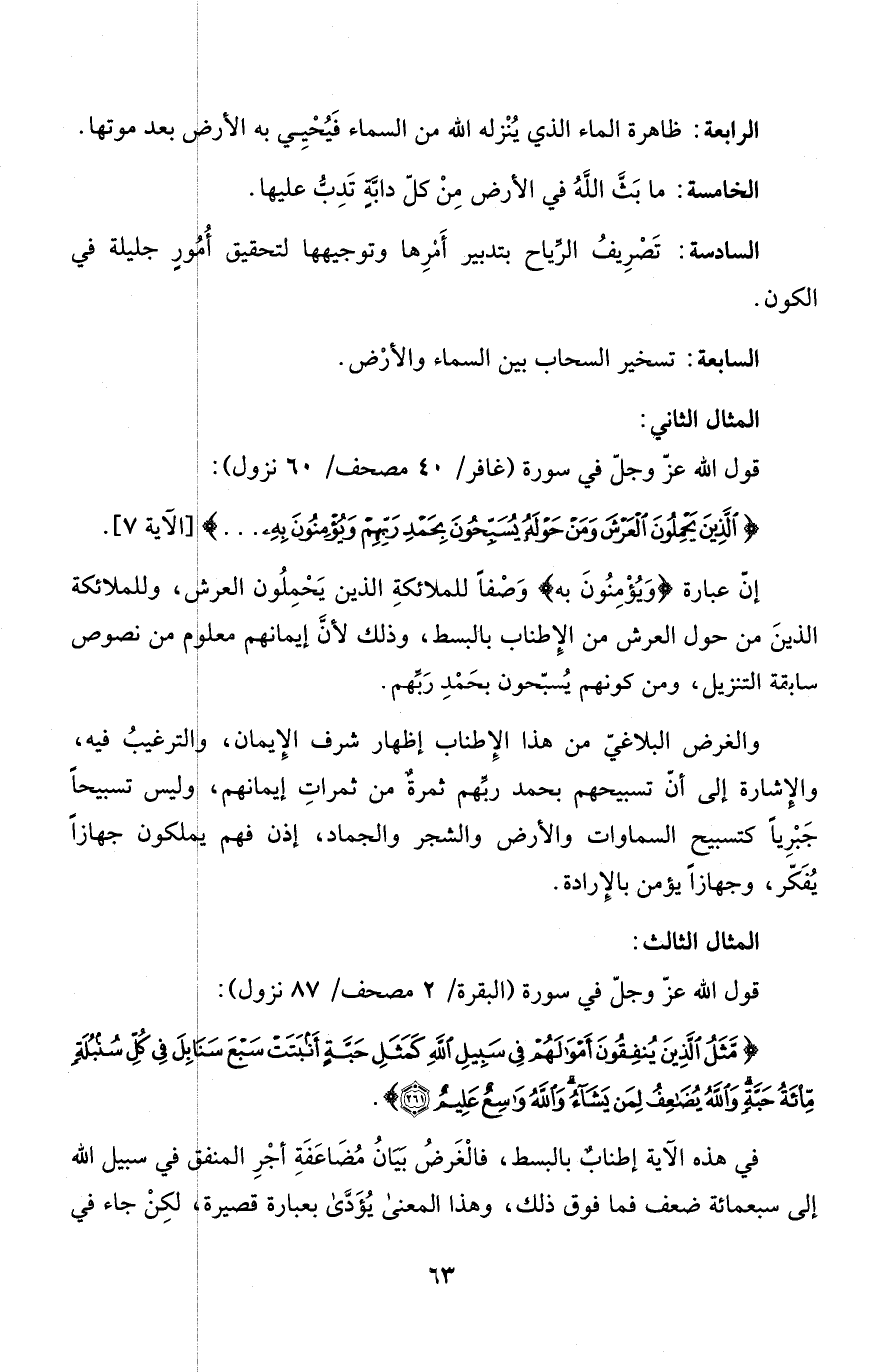 والغرض البلاغيّ من هذا الإِطناب إظهار شرف الإِيمان، والترغيبُ فيه، والإِشارة إلى أنّ تسبيحهم بحمد ربِّهم ثمرةٌ من ثمراتِ إيمانهم، وليس تسبيحاً جَبْرِياً كتسبيح السماوات والأرض والشجر والجماد، إذن فهم يملكون جهازاً يُفَكّر، وجهازاً يؤمن بالإِرادة.
