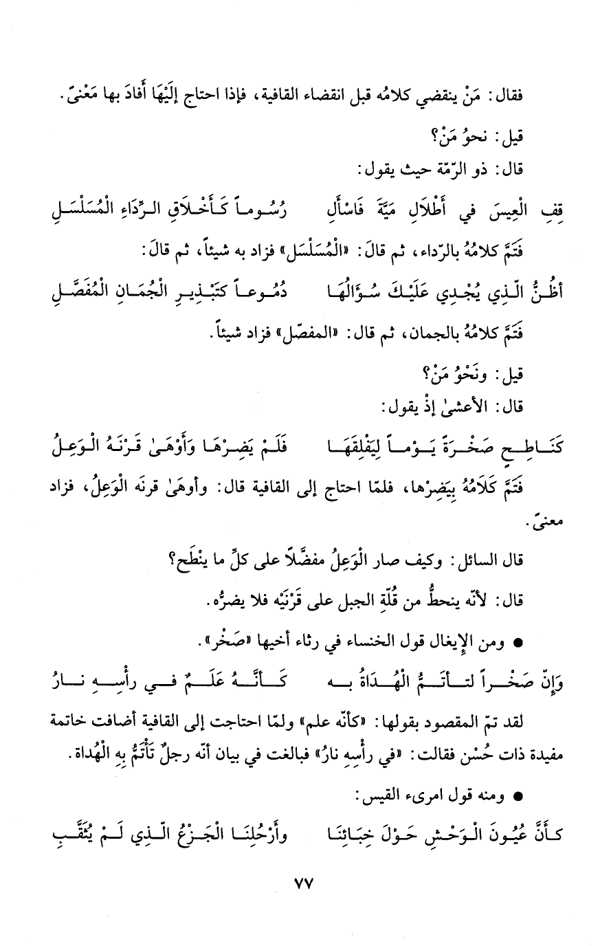 فقال: مَنْ ينقضي كلامُه قبل انقضاء القافية، فإذا احتاج إلَيْهَا أفادَ بها مَعْنىً.