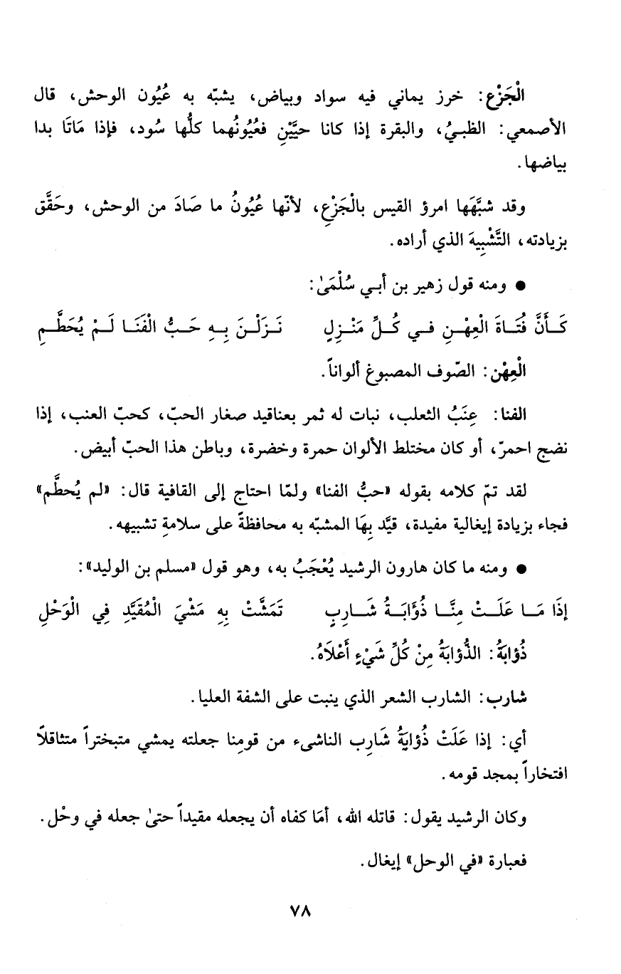 وقد شبَّهَها امرؤ القيس بالْجَزْعِ، لأنّها عُيُونُ ما صَادَ من الوحش، وحَقَّق بزيادته، التَّشْبِيهَ الذي أراده.