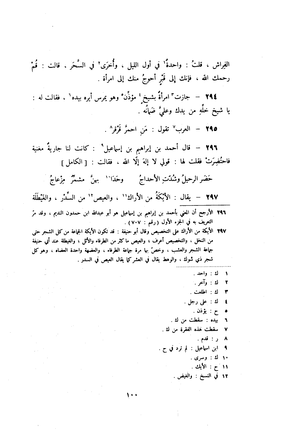 قال أحمد بن إبراهيم بن إسماعيل: كانت لنا جارية مغنية فاحتضرت فقلت لها: قولي لا إله إلا الله، فقالت: الكامل