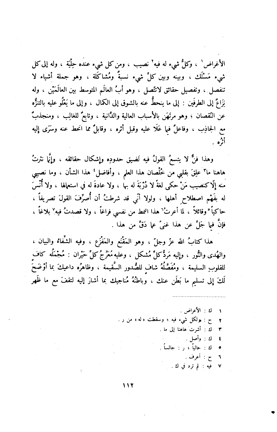 وهذا فن لا يتسع القول فيه لضيق حدوده وإشكال حقائقه، وإنما نثرت ها هنا ما علق بقلبي من خلصان هذا العلم، وأفاضل هذا الشأن، وما نصيبي منه إلا كنصيب من حكى لغة لا دربة له بها، ولا عادة له في استعمالها، ولا أنس له بفهم اصطلاح أهلها، ولولا أني قد شرطت أن أصرف القول تصريفاً، حاكياً وقائلاً، لما أعرت هذا النمط من نفسي فراغاً، ولا قصدت فيه بلاغاً، فإن فيما جل عن هذا غنى عما دق من هذا.