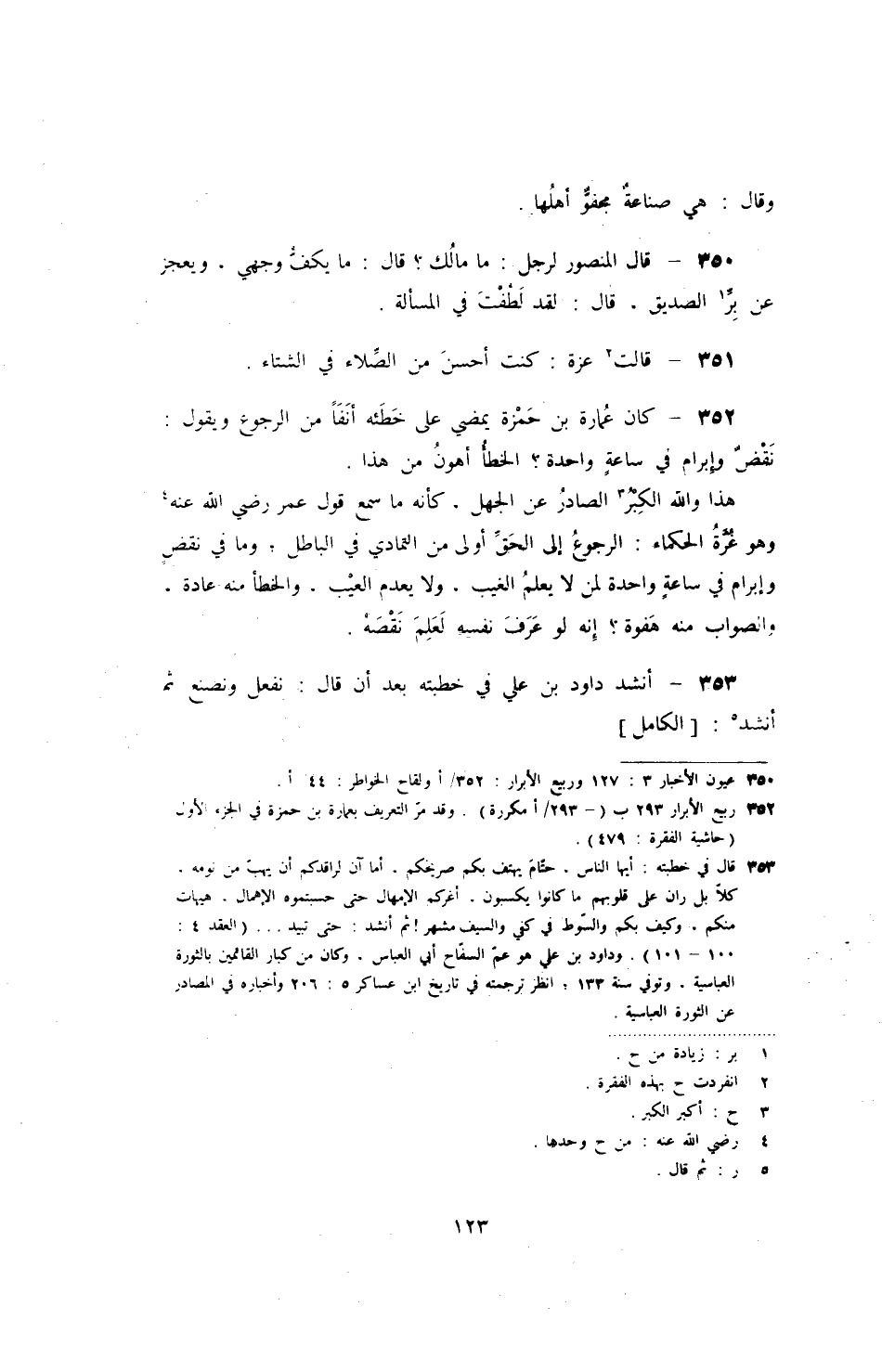 كان عمارة بن حمزة يمضي على خطئه أنفاً من الرجوع ويقول: نقض وإبرام في ساعة واحدة؟ الخطأ أهون من هذا.