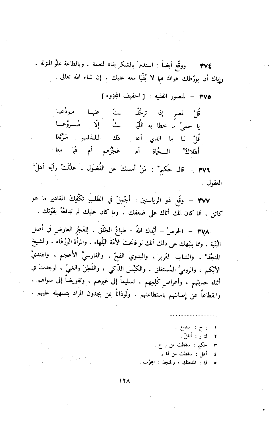 وقع ذو الرياستين: أجمل في الطلب تكف كالمقادير ما هو كائن، فما كان لك أتاك على ضعفك، وما كان عليك لم تدفعه بقولك.
