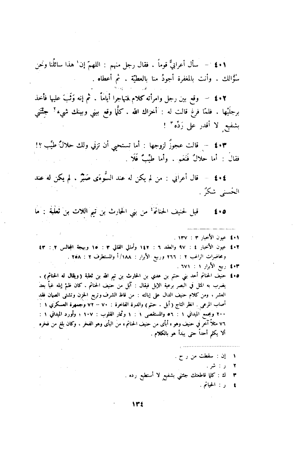 قيل لحنيف الحناتم من بني الحارث بن تيم اللات بن ثعلبة: ما