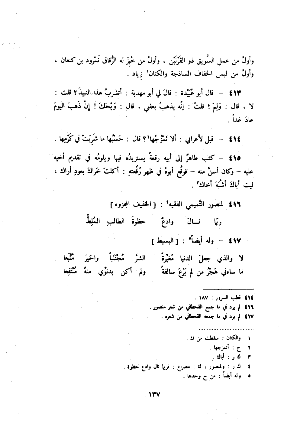 قال أبو عبيدة: قال لي أبو مهدية: أتشرب هذا النبيذ؟ قلت: لا، قال: ولم؟ قلت: إنه يذهب بعقلي، قال: ويحك! إن ذهب اليوم عاد غداً.