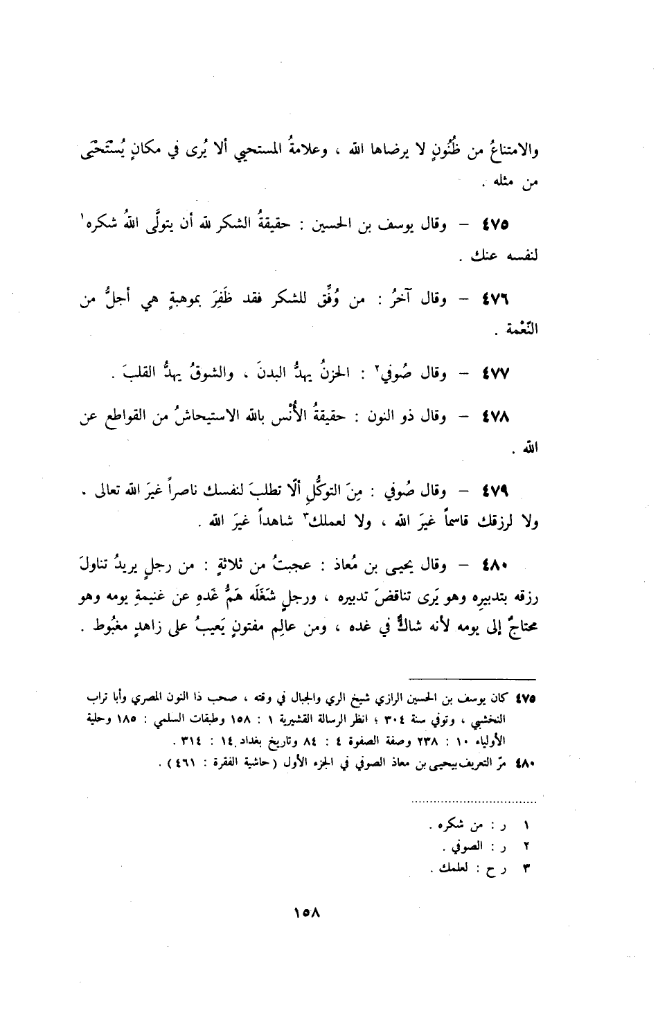 وقال يوسف بن الحسين: حقيقة الشكر لله أن يتولى الله شكره لنفسه عنك.